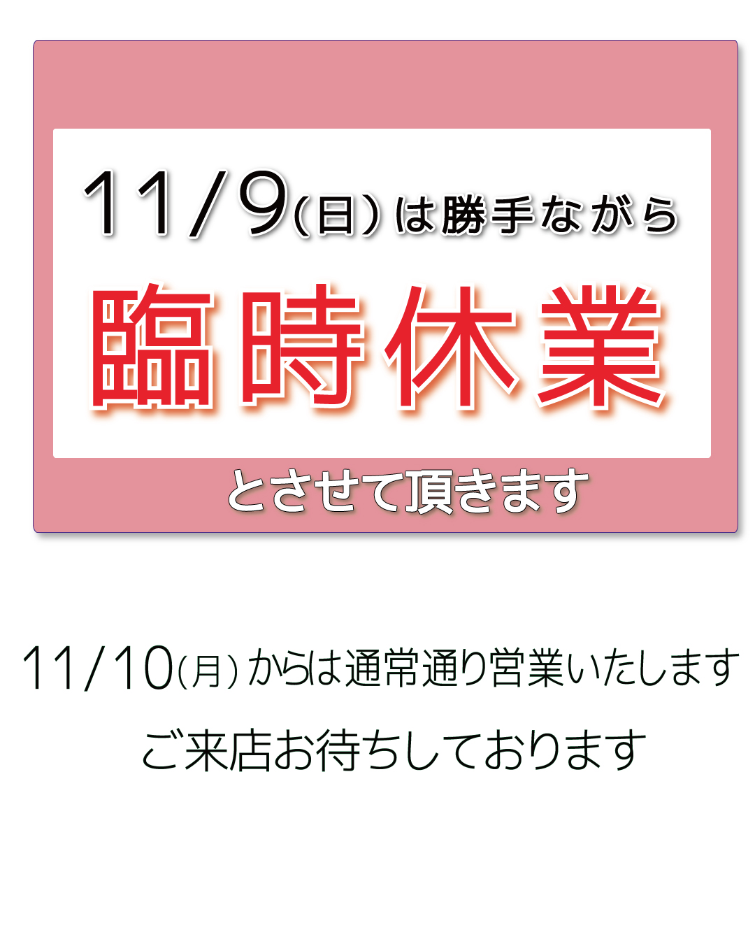 店舗休業日のお知らせ 2025年11月07日 誠に勝手ながら、11/9(日) は店舗休業日とさせていただきます。ネットショップでのご注文は通常通りお受けできますが、発送は11/10(月)以降となりまかので予めご了承くださいませ。 次» What's New